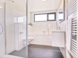 De luxe afgewerkte, gedeelde badkamer is voorzien van een sunshower, douche, ligbad en een tweede toilet. Daarnaast is de vakantiewoning voorzien van airconditioning. Hierdoor geniet u altijd van de perfecte temperatuur in de woning. De berging is van buitenaf toegankelijk en biedt ruimte voor een was-droogcombinatie. De woning beschikt over een ruime tuin met daarnaast twee eigen parkeerplaatsen en is gelegen op een flink bemeten kavel omringd door mooi aangelegd groen. De ideale thuisbasis om de mooiste plekjes van de streek te ontdekken!