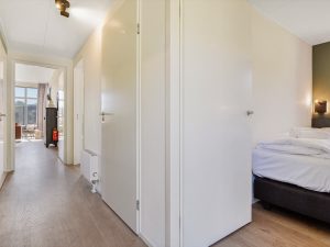 Vanuit de living komt u in de hal met toegang tot drie slaapkamers, een badkamer en een separaat toilet. De slaapkamers zijn allen voorzien van een inbouwkast. De masterbedroom heeft een eigen badkamer met wastafel en douche.