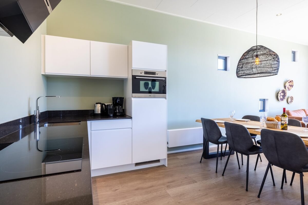 Deze schitterende woning heeft een gezellige, royale living en biedt ruimte aan zes personen. Het interieurpakket is zorgvuldig samengesteld en zorgt voor de perfecte sfeer bij deze woning. De open hoekkeuken is voorzien van alle gemakken,
