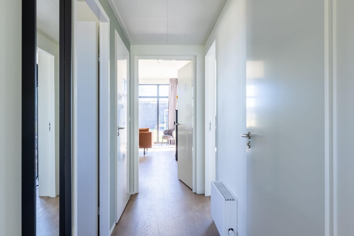 Vanuit de living komt u in de hal met toegang tot drie slaapkamers, een badkamer en een separaat toilet. De slaapkamers zijn allen voorzien van een inbouwkast. De masterbedroom heeft een eigen badkamer met wastafel en douche.