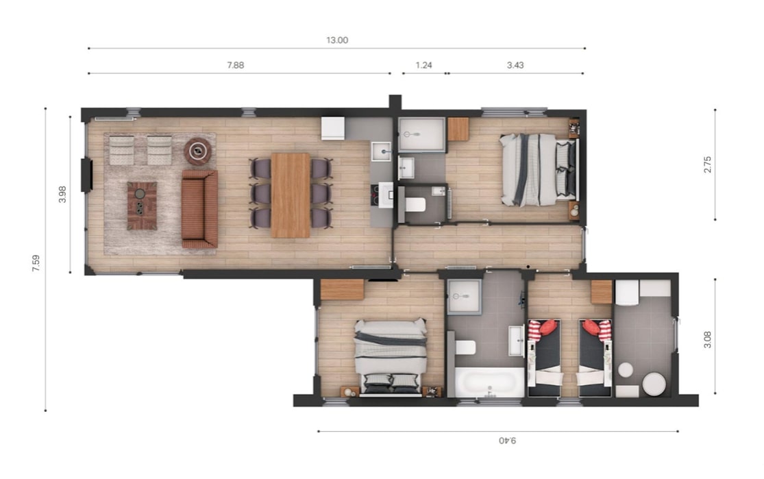 3 slaapkamers