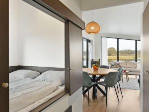 De 4+2-persoons Pijlstaart heeft 2 royale slaapkamers met opbergruimte en een bedstee. In de vakantiewoning bevindt zich een ruime badkamer en een separaat toilet. De berging is van buitenaf toegankelijk en biedt ruimte voor een was-droogcombinatie en enkele fietsen of tuinmeubilair. Hier is tevens de binnenunit van de luchtwarmtepomp geplaatst.