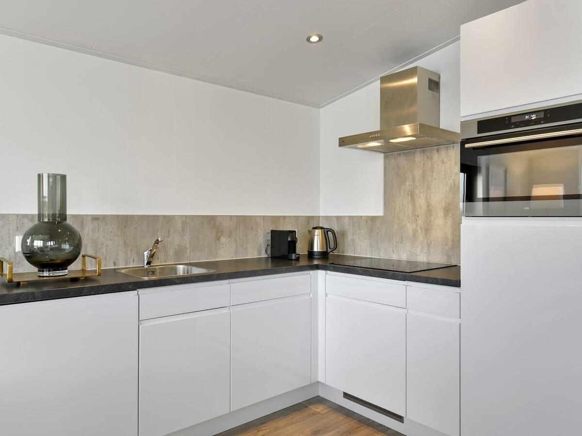 De keuken is geplaatst in hoekopstelling en is voorzien van moderne inbouwapparatuur, zoals een koelkast, combi-magnetron, inductiekookplaat en vaatwasser. Gasloos, snel en efficiënt koken dus! Daarnaast is de vakantiewoning voorzien van airconditioning. Hierdoor geniet u altijd van de perfecte temperatuur in de woning.