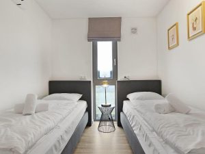 Deze 8-persoons woning heeft maar liefst vier slaapkamers. De masterbedroom is voorzien van een eigen badkamer. Via de hal bereikt u de extra badkamer, met toilet en douche, en het separate toilet. In de berging bevindt zich de aansluiting voor een wasmachine en droger. Hier is tevens het boilervat van de multisplit warmtepomp geplaatst. Ook heeft deze woning 10 stuks zonnepanelen. Duurzaamheid staat hoog in het vaandel en dit type voldoet dan ook aan de BENG-eisen en is gasloos.